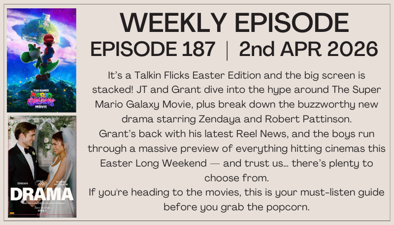JT and Grant talk all things movies, from new Releases to Special Events. Movie news, Top 5 movies from around the world & of course Australia.
